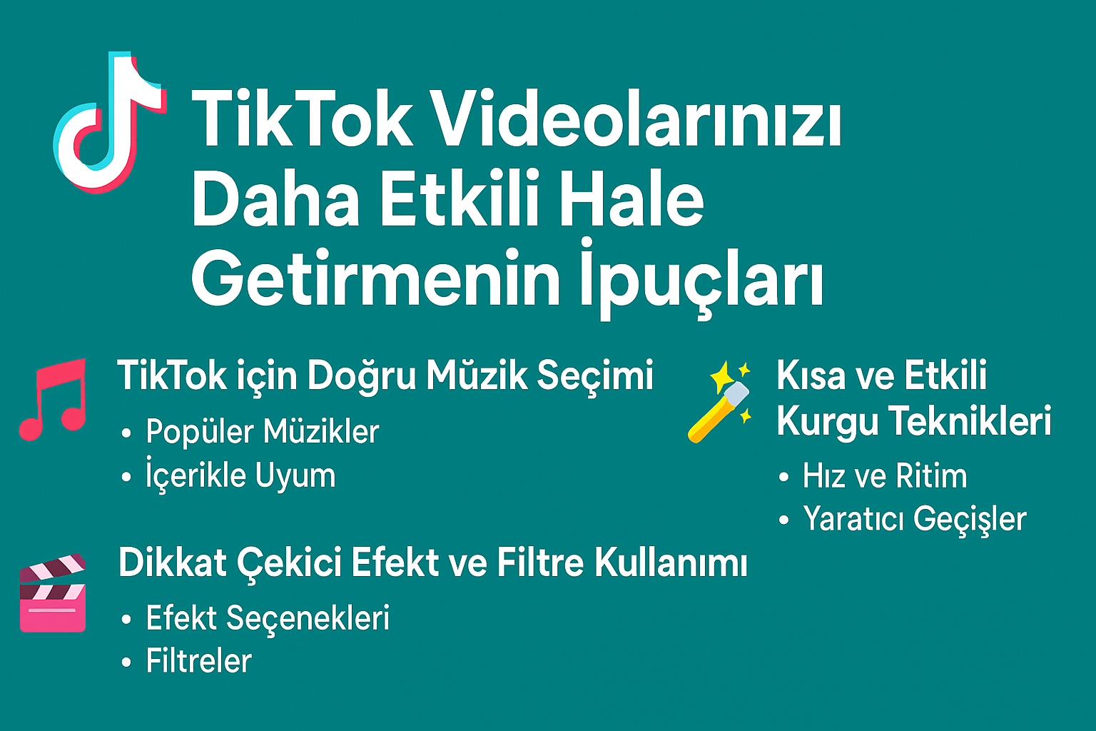 TikTok, milyonlarca kullanıcıya ulaşan ve içerik üreticiler için büyük fırsatlar sunan bir platformdur. Doğru müzik seçimi, dikkat çekici efektler ve etkili kurgu teknikleri ile videolarınızın izlenme sayısını artırabilir ve daha fazla etkileşim elde edebilirsiniz. Bu yazıda, TikTok videolarınızı daha profesyonel ve ilgi çekici hale getirecek pratik önerileri bulabilirsiniz.